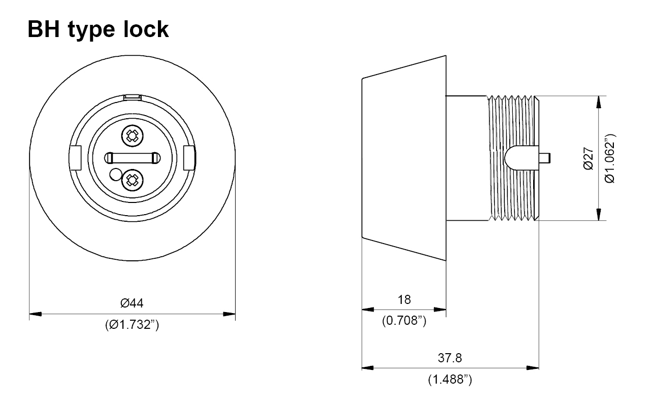 Application Compatible with "Miwa" BH & LA lock cases. Operation 360˚ rotation with operating key. Materials Body and plug: high-quality brass Pins: nickel silver and stainless steel Standard finishes Nickel satin Cylinder mechanism Mul-T-Lock's unique, high-precision pin tumbler system. Keys Reversible nickel silver key with plastic key head and colored insert. Also available in all nickel silver. Cylinder platforms Classic; Interactive®+ Cylinder options Keyed different Keyed alike Master keyed Standards CPC cylinder-for-miwa-type-bh-la-locks_bh_drw.jpg |