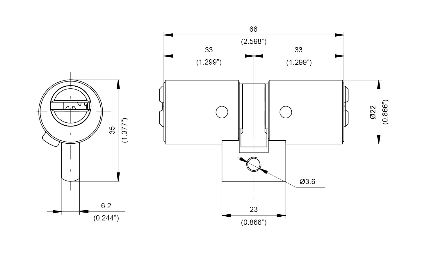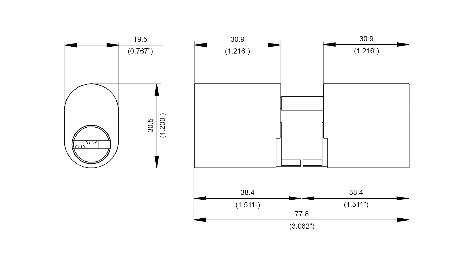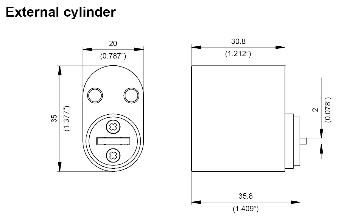 Application Compatible with "ASSA" lock cases. Operation 360˚ rotation with operating key. Options Pair of internal and external cylinders External cylinder only Materials Body and plug: high-quality brass Cam: steel Pins: nickel silver and stainless steel Standard finishes Nickel satin; Brass Cylinder mechanism Mul-T-Lock's unique, high-precision pin tumbler system. Internal cylinder with 4 chambers. Keys Reversible nickel silver key with plastic key head and colored insert. Also available in all nickel silver. Cylinder platforms Classic; Interactive®+; MT5® Cylinder options '3 IN 1' (changeable combination) Keyed different Keyed alike Master keyed scandinavian-oval-cylinder-for-assa-type-locks_ext_drw.jpg |