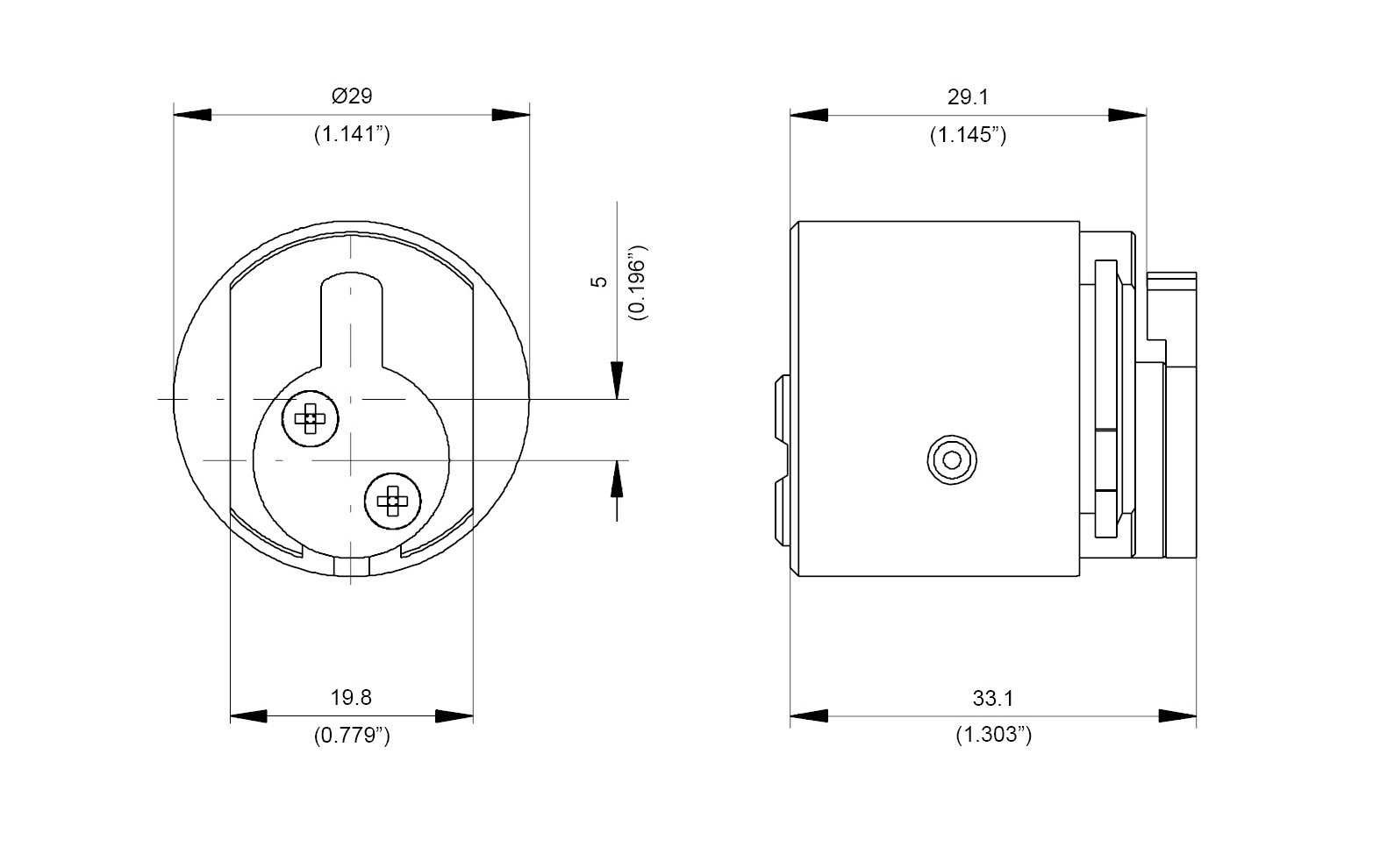 Application Compatible with "Cazis" lock cases. Operation 360˚ rotation with operating key. Materials Body and plug: high-quality brass Cam: steel Pins: nickel silver and stainless steel Standard finishes Nickel chrome Cylinder mechanism Mul-T-Lock's unique, high-precision pin tumbler system. Keys Reversible nickel silver key with plastic key head and colored insert. Also available in all nickel silver. Cylinder platforms Classic; Interactive®+; MT5® Cylinder options Keyed different Keyed alike Master keyed cylinder-for-cazis-type-locks_ext_drw.jpg |